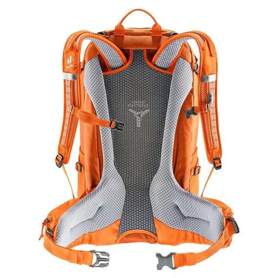 Maximale Belüftung, ergonomischen Komfort und Leichtigkeit vereint dieses neue Netzrücken-System. Die innovative Konstruktion der Hüftflossenpartie und ihr fließender Übergang in das Rückennetz umschließen den Träger förmlich und sorgen für bequemen Sitz. Die flexible Rahmen-Konstruktion aus dauerhaft elastischem und bruchfestem Federstahl gibt dem Aircomfort-Rückennetz seine stabile Spannung. Zuverlässig schafft es einen Ventilationsraum zwischen Rucksack und Rücken, über den die feuchte Luft ungehindert abzieht. Mit der patentierten Deuter 3-Seiten Belüftung schwitzt der Träger bis zu 25%* weniger. Die hohe Flexibilität der gesamten Konstruktion gibt dem Träger Bewegungsfreiheit.