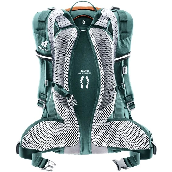Garantiert das Airstripes System. Dank der geringen Auflagefläche der Rückenpolster ermöglicht das System eine hohe Luftzirkulation am Rücken. Die automatische Seitenkompression und Pull-Forward-Verstellung fixiert den Rucksack schnell und kompakt.